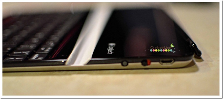 The groove in the keyboard is meant to hold your iPad at the perfect angle. I loved that as soon as I put the iPad in the groove I heard a little click. The groove is magnetic to hold the iPad snugly in place while using the keyboard making this great for even “not so stable” places like your lap (great for travel!).