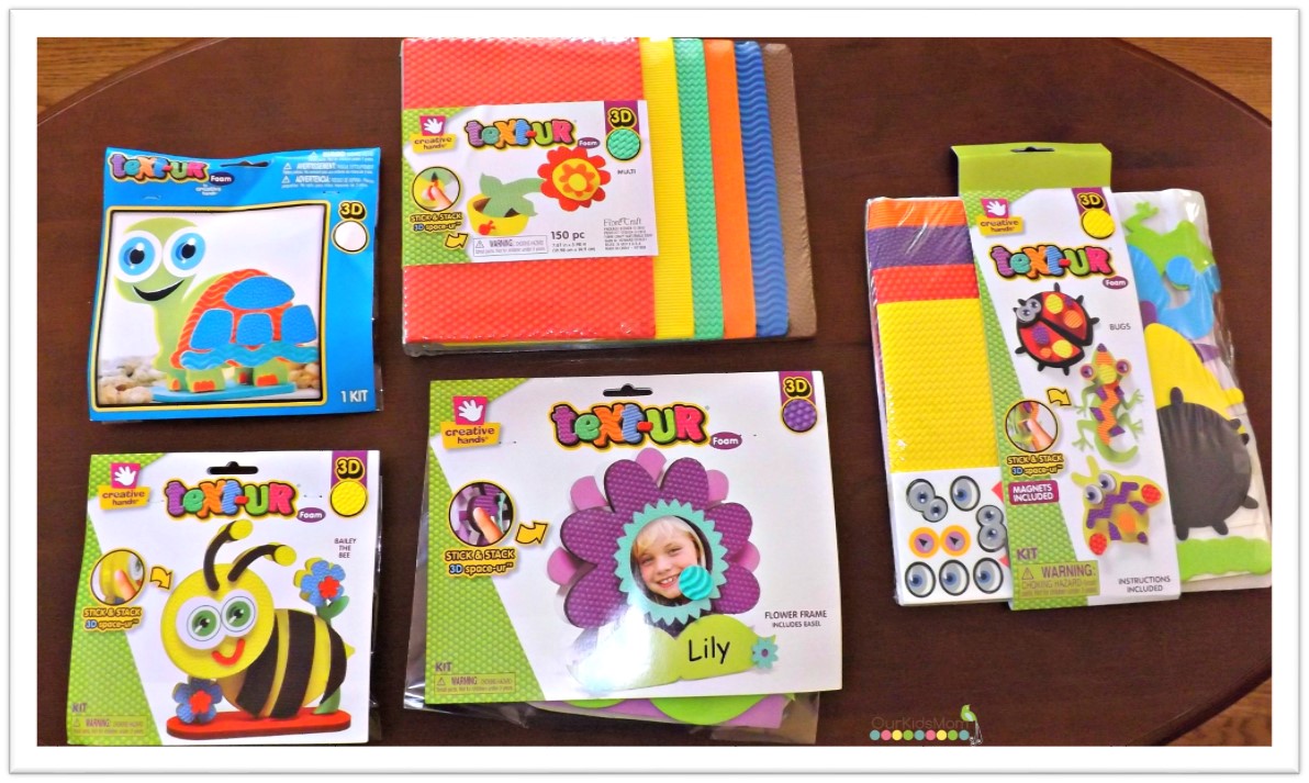 My kids love to do crafts so getting the chance to try the text-Ur foam craft kits was something I knew would be right up their alley. We were given the “Standard Package” which consists of: