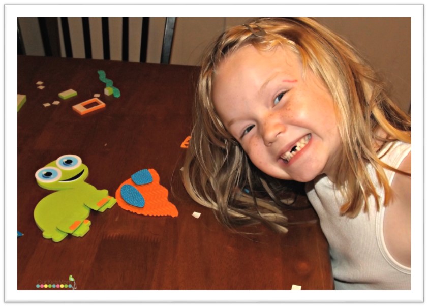 The first set my girls wanted to try was the Bugs kit. Mikenah LOVES ladybugs, so I knew she was eyeing that one! Michaela decided on the lizard/gecko. Before opening the packaging, I wasn’t sure if we would need scissors or glue, but once we got everything out, I was pleasantly surprised to see that everything needed was included. Mikenah decided that instead of smiling nicely, she wanted to stick her tongue out like a lizard. It was that, or she was just being crazy like normal. Either way, she was super excited to get started.