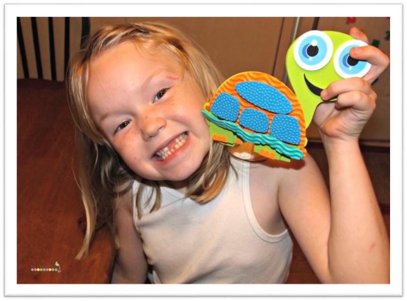 The next day, my super-duper crafty kid, Mikenah, went crazy and tore into the rest of the kits. All of them were pretty easy and she had a blast. Her favorite this day was the turtle. My favorite this day was her “I just played outside and my hair looks like a rat’s nest” look. Then again, her hair looks like that most days. J I gave up on the whole “my kids must look perfect at all times” phase a long time ago. Ha!