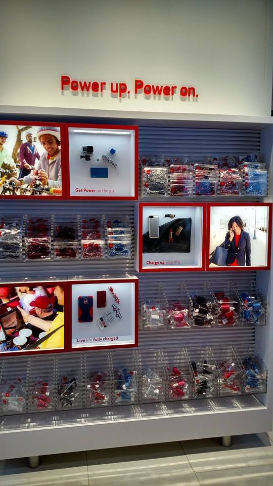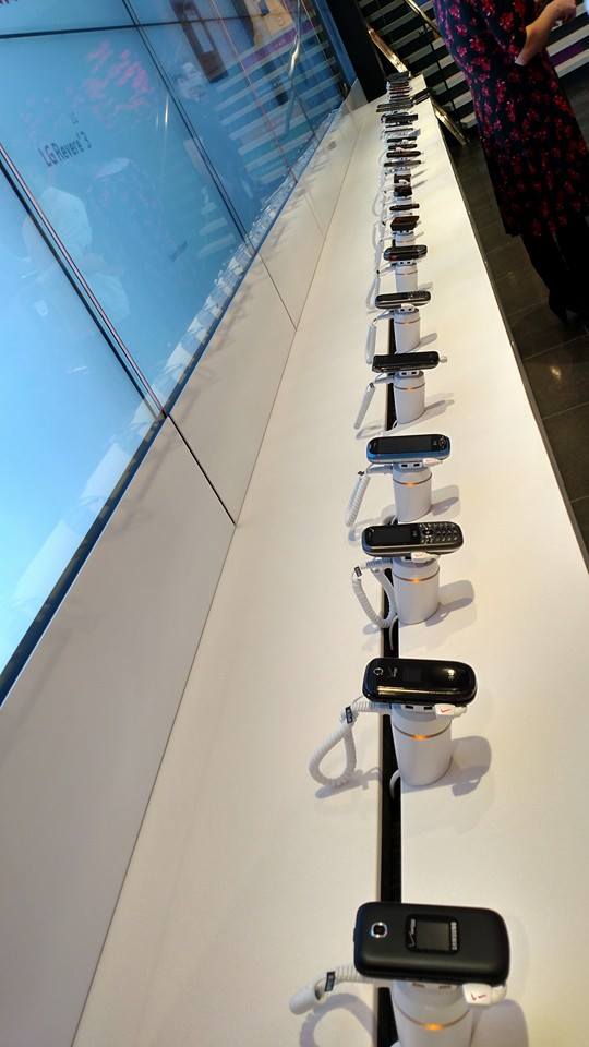 Either take a break and put your feet up…. or a friendly Verizon employee will lock your charging device up and give you a claim ticket so you can continue to shop.
