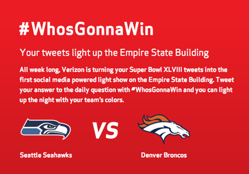 Every night Verizon will light up the Empire State Building in the “winning” teams colors!