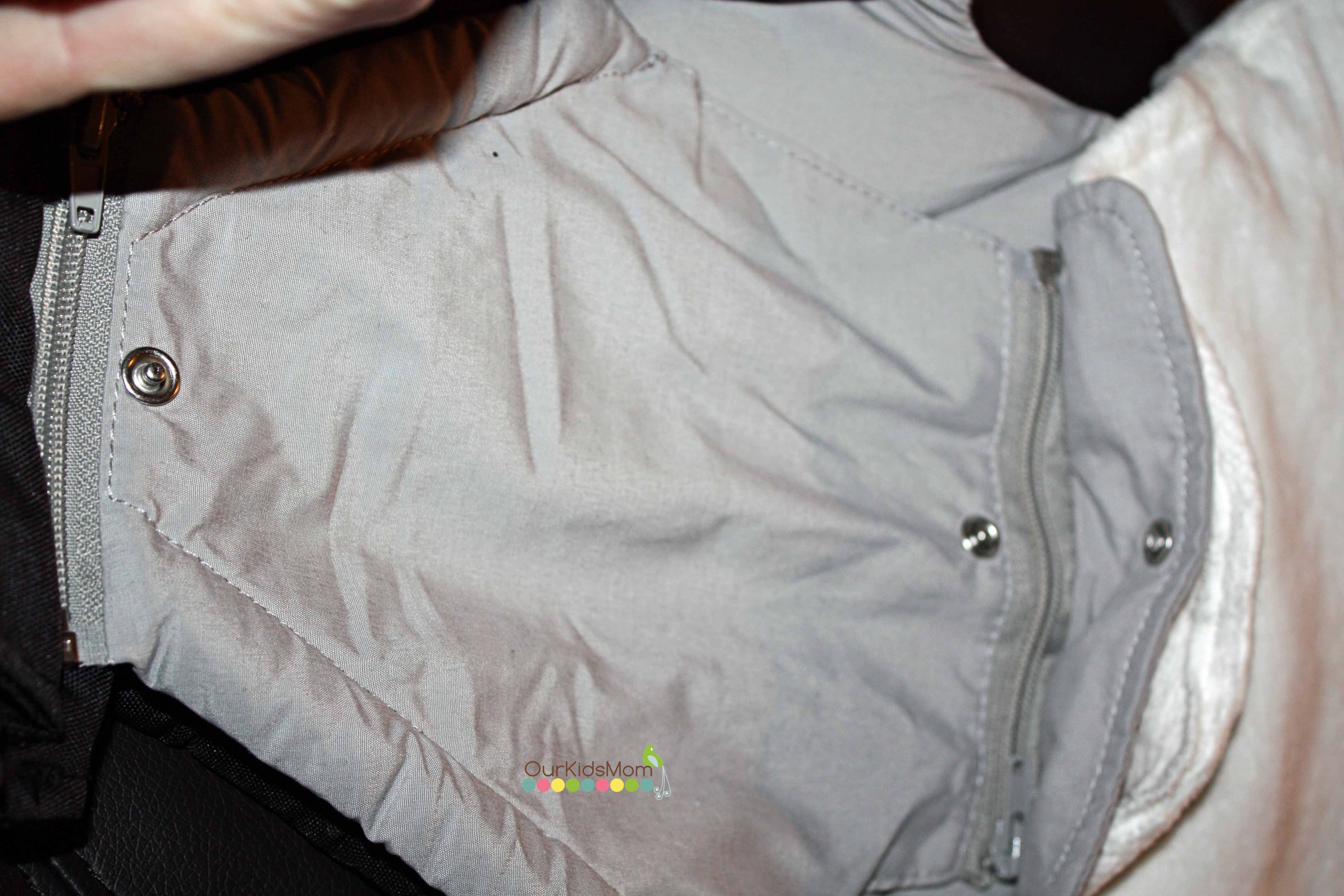 Photo4 The carrier comes with an infant insert that  zippers in the inside of the carrier to ensure that even your newborns fit and stays secure within the carrier. The infant insert is designed for babies weighing between 8 to 14 lbs. Having this insert in allows your baby to sit closer up to the top of the carrier where they are more comfortable being closer to you, rather then being lost in the bottom of the carrier.