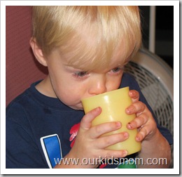 I mixed up a glass for each of them and added some ice chips. Initially they both thought it was Kool-Aid, but since it was a little sweeter than our sugar-free variety… Ethan began asking questions. You know the ones.. “Mommy, what is this?”. I explained in simple terms that it is kind of like “vitamin water” and they were okay with that.