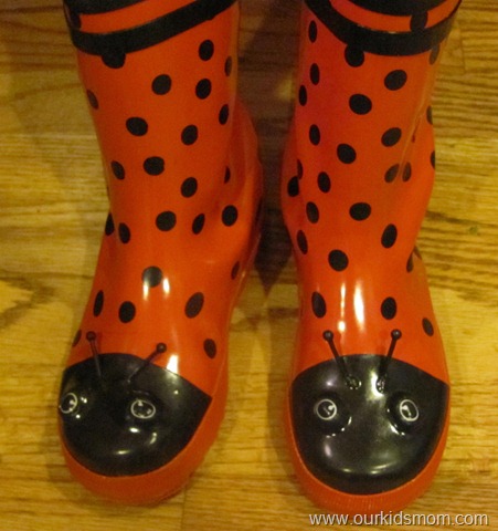 Can you believe how adorable these boots are?! Emma squealed when I gave them to her. The cute buggy eyes and the antenna are the perfect touch. You can tell these boots are high quality just by picking them up. They are a good weight and thickness. I choose a size up for growing room and they seem pretty true to size. I can’t wait for spring so I can let her outside to splash in the puddles.