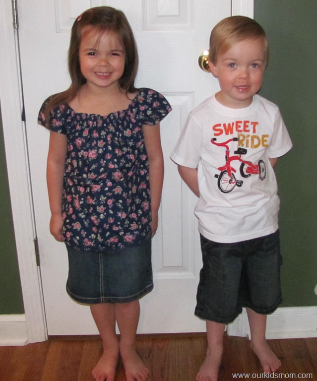 Recently I had the kids put on a fashion show for me. Not a fashion show of new clothing, but their clothes from last spring and summer. They love to do this every season and we decide what to keep and what’s too small. Our fashion show this season created a nice big “garage sale” pile and a much smaller keep pile.