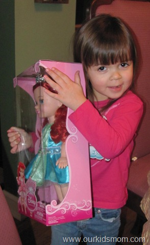 Tollytots makes several Disney Princess items. When we were asked to review a princess doll in baby or toddler form I jumped on the opportunity. Emma has a mild obsession with Disney Princesses and was so excited when we “window shopped” online for a new doll. It didn’t take her long to decide that she needed the Ariel doll.
