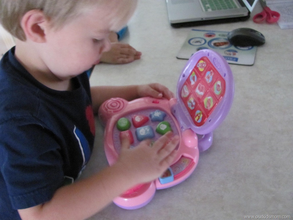 All of my babies love(d) electronic toys. Lights, noises, bright colors, buttons, sliders… all of the above. Vtech toys have always been one of our favorite brands. For some reason the kids have always seemed to react best to them. When I was offered the Vtech Baby’s Learning Laptop I eagerly said yes.