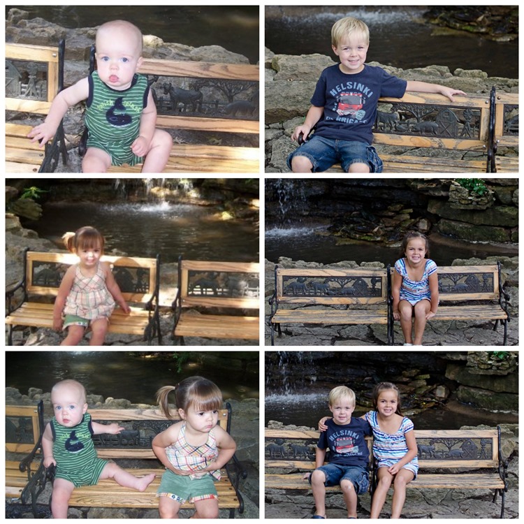 The kids and I went back to a local farmstead this summer for a day of fun. On the way out my oldest daughter reminded me we had taken photos in front of the waterfall when the kids were little. So, we decided to take them again. I wish I had remembered where they were sitting, but this is a close reenactment.