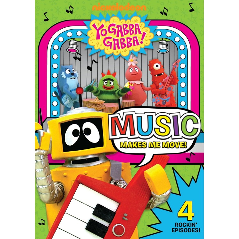 The Gabba gang stars in four fun-filled episodes where they start a band, learn it’s okay to be different and ride on trains in the brand new DVD, Yo Gabba Gabba: Music Makes Me Move! Yo Gabba Gabba! is created by Christian Jacobs and Scott Schultz and is produced by The Magic Store and W!LDBRAIN Entertainment. Yo Gabba Gabba: Music Makes Me Move! will be released by Nickelodeon Home Entertainment and distributed by Paramount Home Entertainment on August 9, 2011, and sold for the suggested retail price of $16.99.